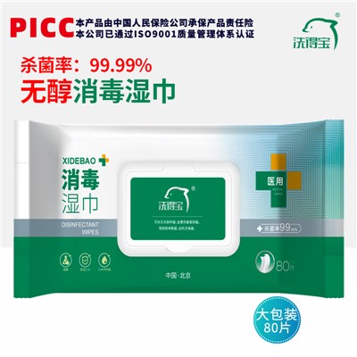 洗得寶014 家居消毒/衛(wèi)生間清潔 不含酒精消毒濕巾 殺菌99.99 % 醫(yī)用濕巾 成人兒童 80抽/包