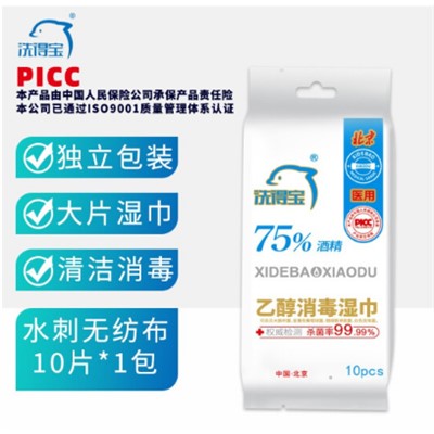 洗得寶015家具消毒/衛(wèi)生間清潔 75%酒精濕巾 一次性消毒酒精棉片大號 單片獨立包裝 免洗洗手消毒液濕巾10片/包