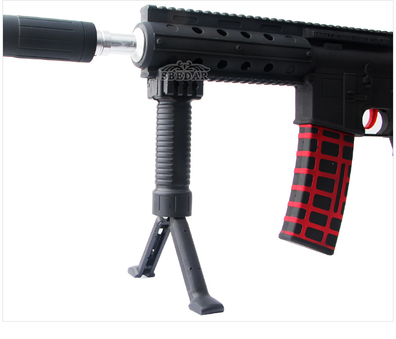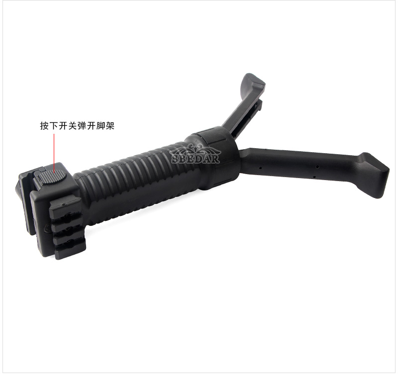 按下按鈕解鎖Bipod Legs,并收回彈簧加載的腿,推回。