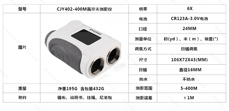 測距范圍:5-400m