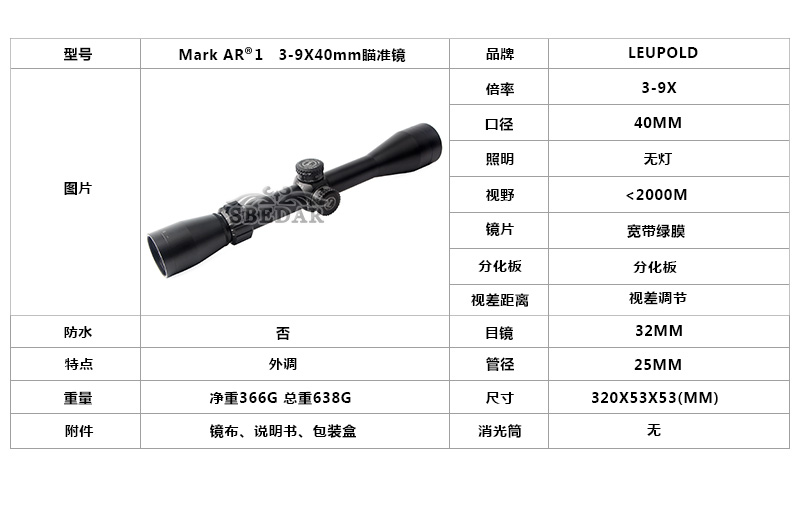 型號(hào):3-9x40瞄準(zhǔn)鏡
