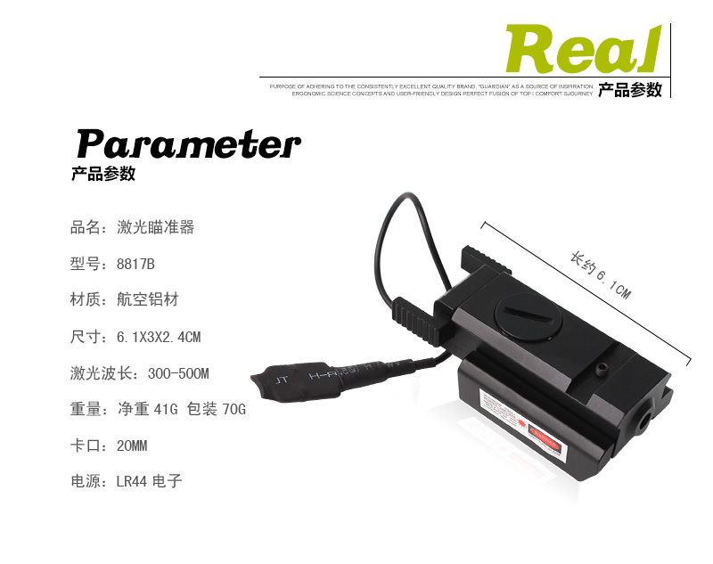 低基軌道版紅外線鐳射紅激光瞄準器帶鼠尾 8817B紅激光
