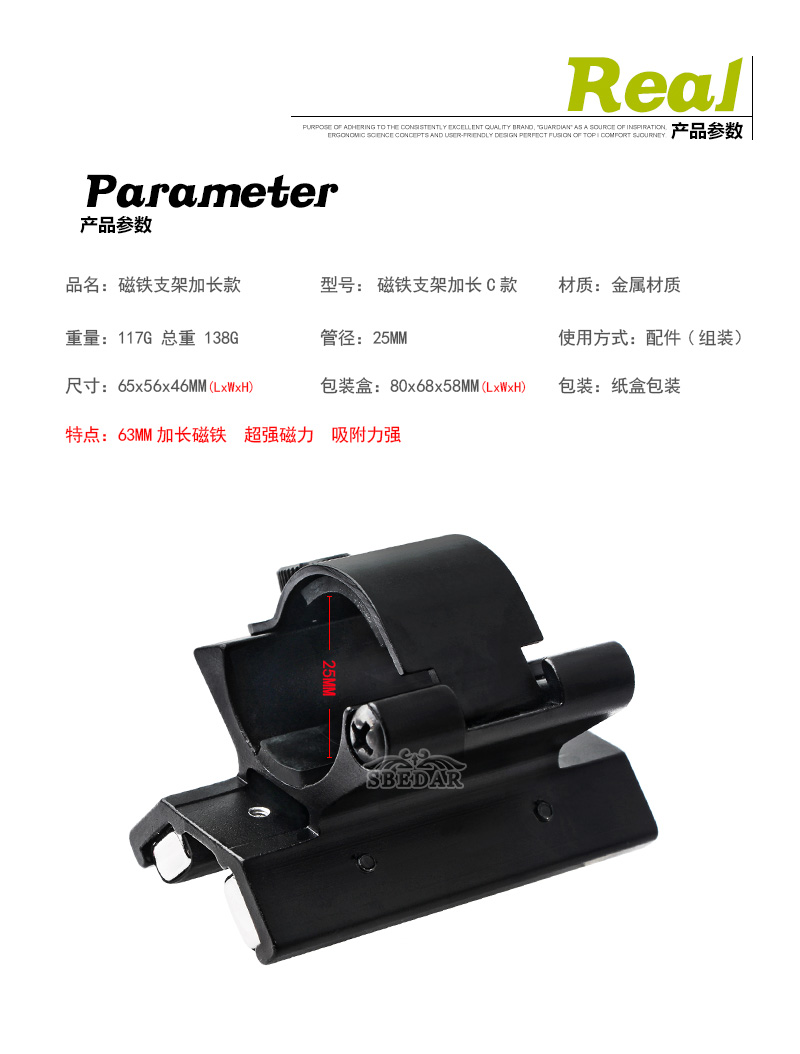 25.4mm管徑磁鐵低基支架C款 63mm加長支架