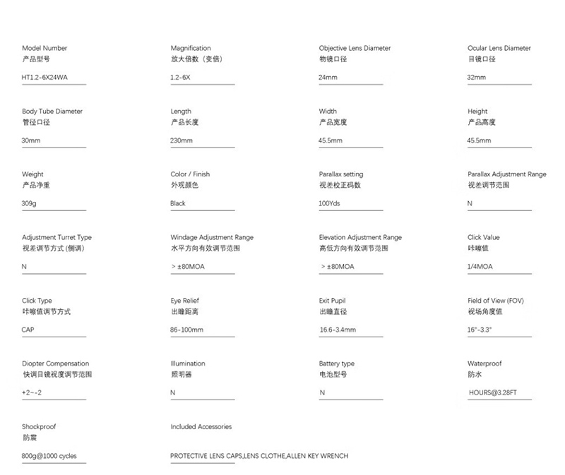 1.2-6x24ir速瞄抗震分化瞄準(zhǔn)鏡