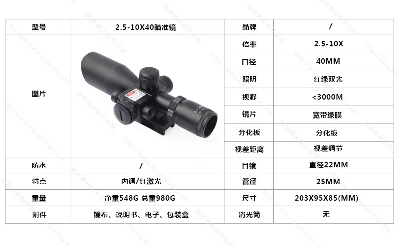 它是一種超緊湊的戰(zhàn)術(shù)瞄準(zhǔn)鏡,專(zhuān)為近距離、舒適的眼部放松距離拍攝而設(shè)計(jì),光學(xué)清晰度高,放大2.5-10倍,目標(biāo)直徑為40毫米的紅色激光。