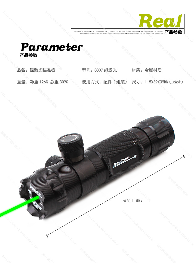 【包含】:夾具、CR123鋰電池1枚、控制開關(guān)、黑色硬盒包裝、2內(nèi)六角扳手和鐳射發(fā)射器本體。