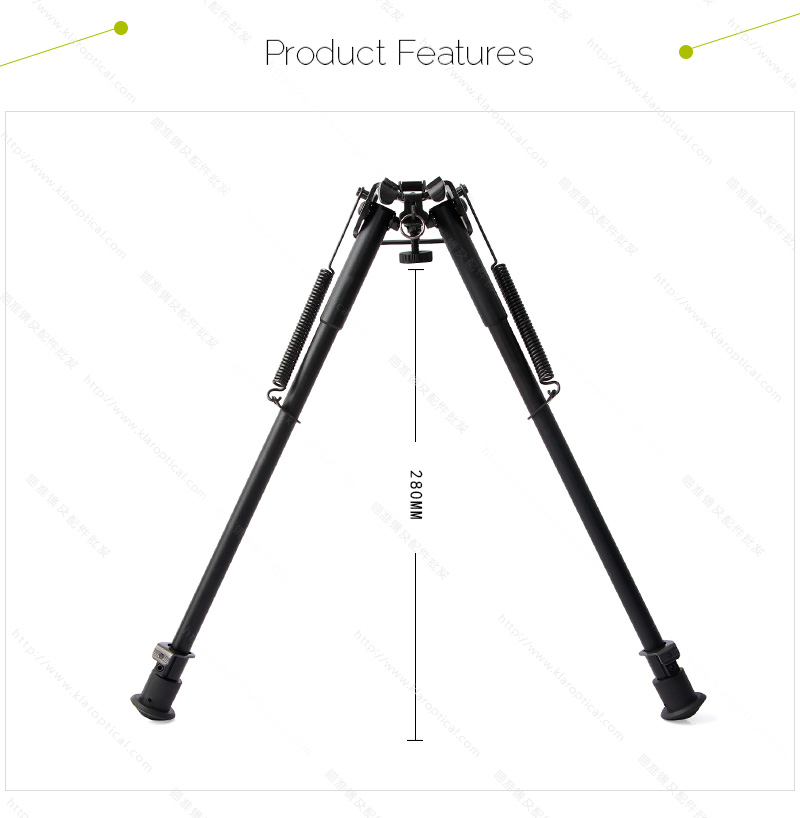 這個兩腳架是由最好的飛機級鋁和材料雙腳架功能缺口鎖定腿,旋轉樞軸蘇在不平的地面或不同的拍攝條件,橡膠腳,保護墊對雙腳架,以不損害