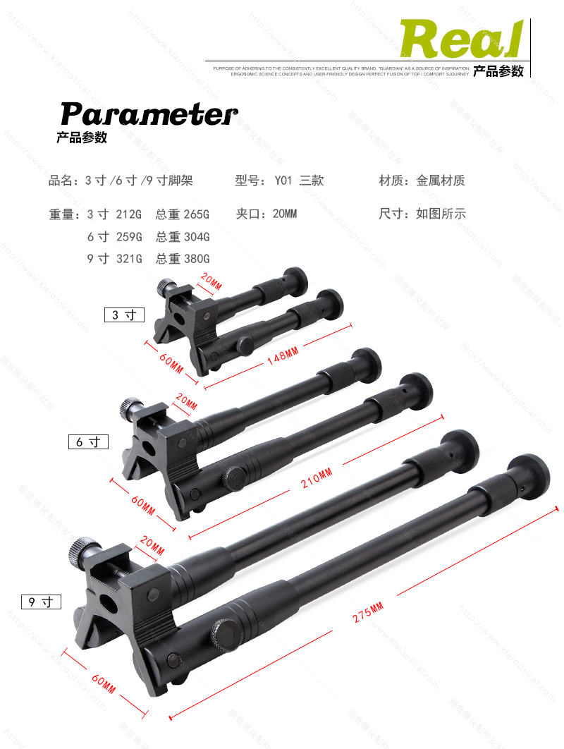 Y01-9 平口20mm伸縮兩腳架