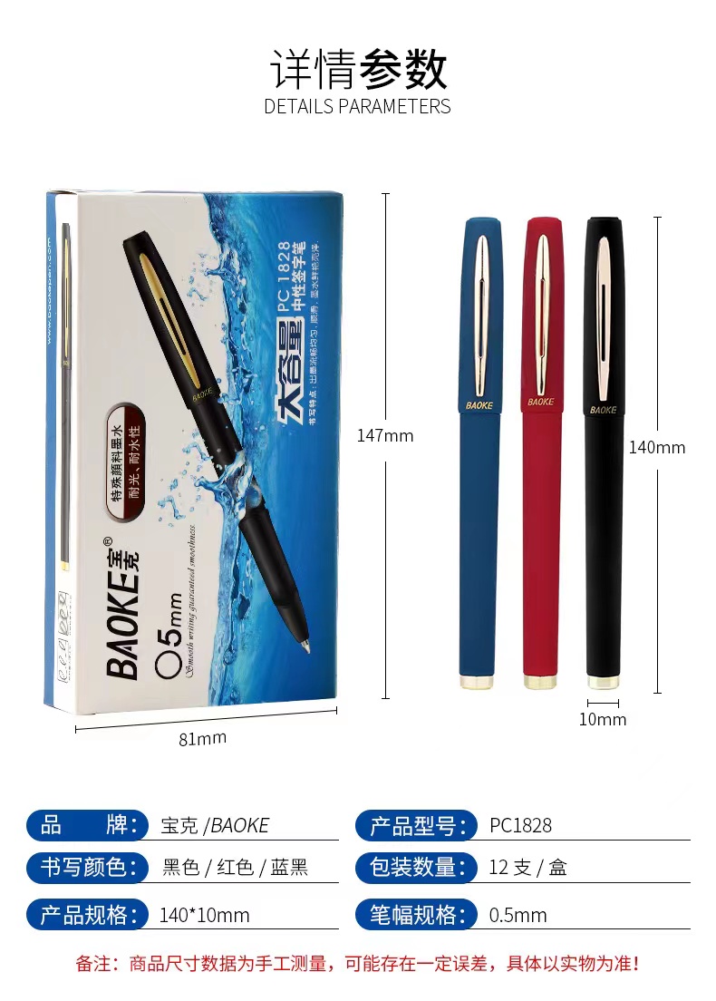 寶克PC1828書寫用筆類用具中性筆大容量筆芯磨砂簽字筆0.5黑色(支)